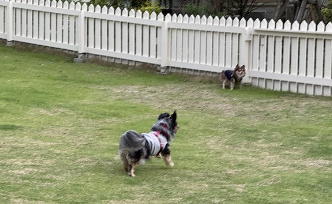 ●少々怯えますが、ワンコと少しずつ交流はできてきました。